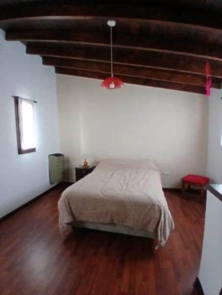 Excelente Chalet de 3 ambientes, con amplio parque al frente y quincho con parrilla. En planta baja living-comedor, cómoda cocina separada, habitación muy amplia con placard, baño completo, quincho, parque y lavadero, trotadora para varios autos. En planta alta segunda habitación muy espaciosa.